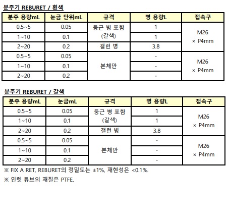 (Clear, Amber Disponsers REBURET) 백색, 갈색 분주기 REBURET 분주기 입니다. 투명한 타입과 갈색 타입이 있습니다. ※ 상세내용 카탈로그 참조.