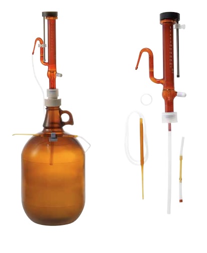 ● 전용 둥근 병 내의 액체를 쉽게 지정량 분주할 수있는 탁상형 분주기 ● 실린더의 용량 눈금에 포인터를 맞추는 간단한 용량 설정 방식 ● 접액부는 경질 유리와 불소 수지로 내약품성이 우수 (선관 튜브, 부속 병 제외) ● 옵션의 시약병 설치용 어댑터 세트에 의해 일반 시약병이나 갤런병 등도 사용 가능 ● 오토클레이브 멸균 (121℃, 20분) 가능(부속병 제외)